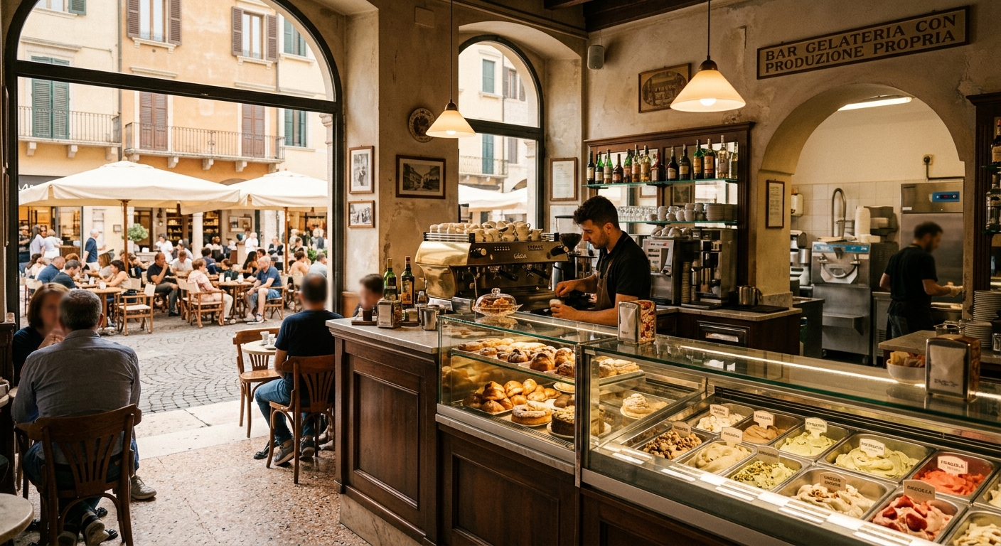Bar Gelateria con Produzione Propria in Piazza Centrale a Verona