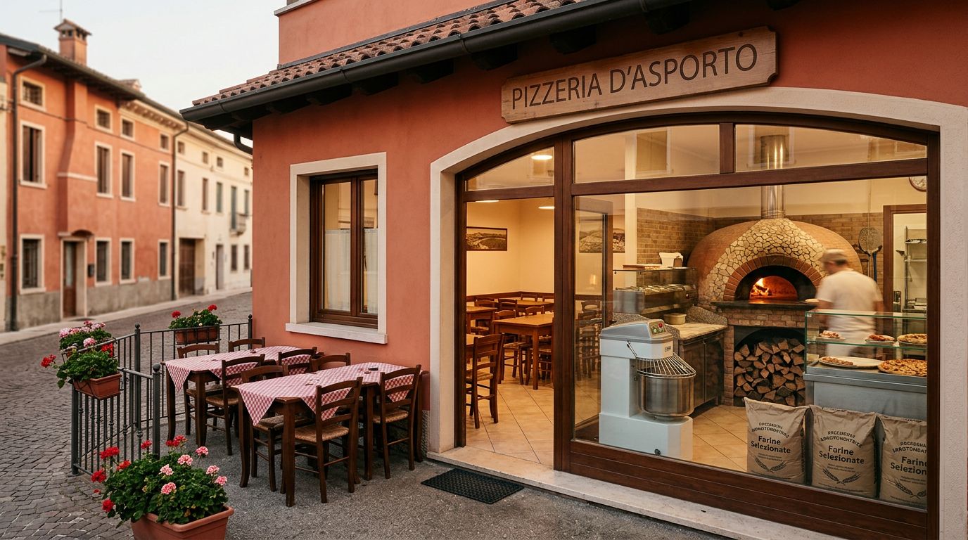 Pizzeria d'asporto di 100 mq con 12 posti a sedere e plateatico privato, situata nei pressi di Isola della Scala. Dispone di arredi e attrezzature recenti e di qualità, tra cui un forno Marana 13 pizze legna-gas e una spezzettatrice arrotondatrice Vitella. Utilizza farine esclusive di un'azienda leader. L'attività ha un ottimo giro d'affari con un consumo di 80 kg di mozzarella e apertura serale per cinque giorni a settimana. Richiesta di 76.000 Euro trattabili, con affitto dei muri a 1.100 Euro mensili.
