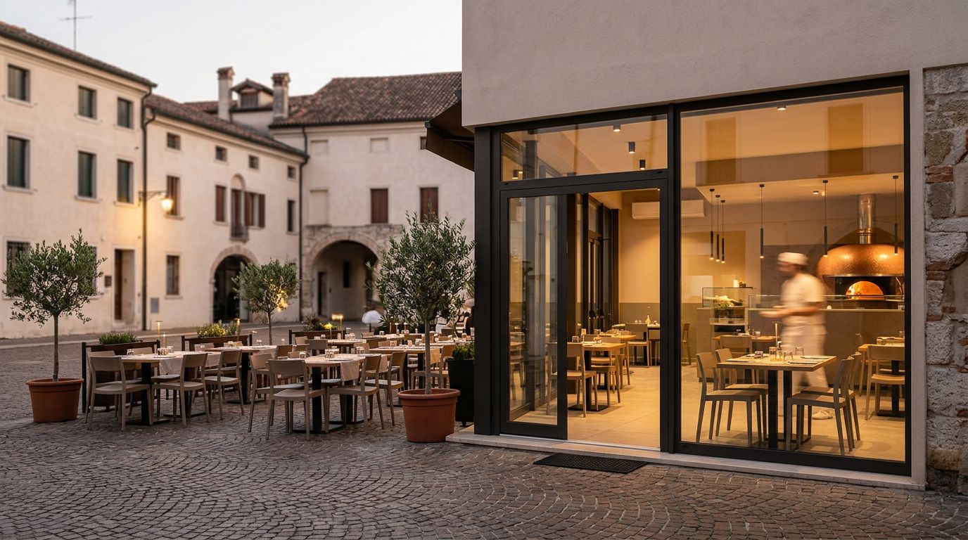 Cedesi pizzeria rinomata con posti a sedere situata vicino Noale (VE). La location, realizzata ex novo 2 anni fa, presenta uno stile moderno e si affaccia sulla piazza storica del paese. Dispone di una superficie commerciale di circa 250 mq, con ampio dehor esterno di circa 50/60 posti e 80 posti interni. Dotata di forno fisso a gas. L'orario di apertura è serale (18:30-23:00) con chiusura il lunedì. La gestione attuale impiega 6/7 persone. Ottimo volume d'affari annuo. Disponibile da Ottobre 2026. Riferimento: P 33.