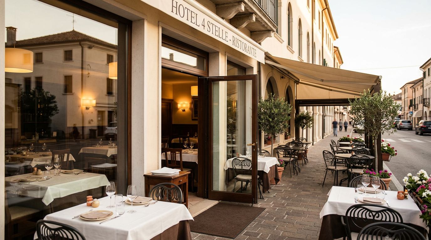 Affittasi ristorante di 250 mq al piano terra di un hotel 4 stelle vicino Padova. Dispone di 60 posti interni e 40 esterni privati. Situato fronte strada di forte passaggio con parcheggi nelle vicinanze. Ideale per gestione familiare. È richiesto il servizio di colazione per l'hotel, retribuito a parte. L'affitto d'azienda è di 3.000€ mensili più IVA. Deposito cauzionale di 15.000€ tramite versamento o fideiussione bancaria. Rif. 140